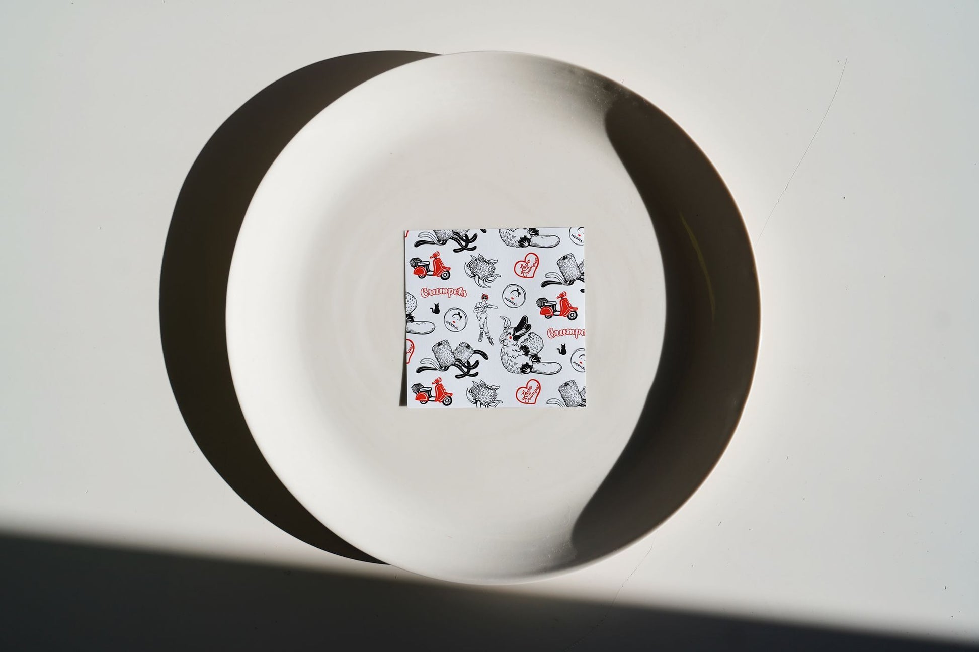 Set of six illustrated serving papers designed by Pilar Basa, featuring native florals and animals enjoying crumpets. A creative alternative to traditional doilies for serving crumpets.