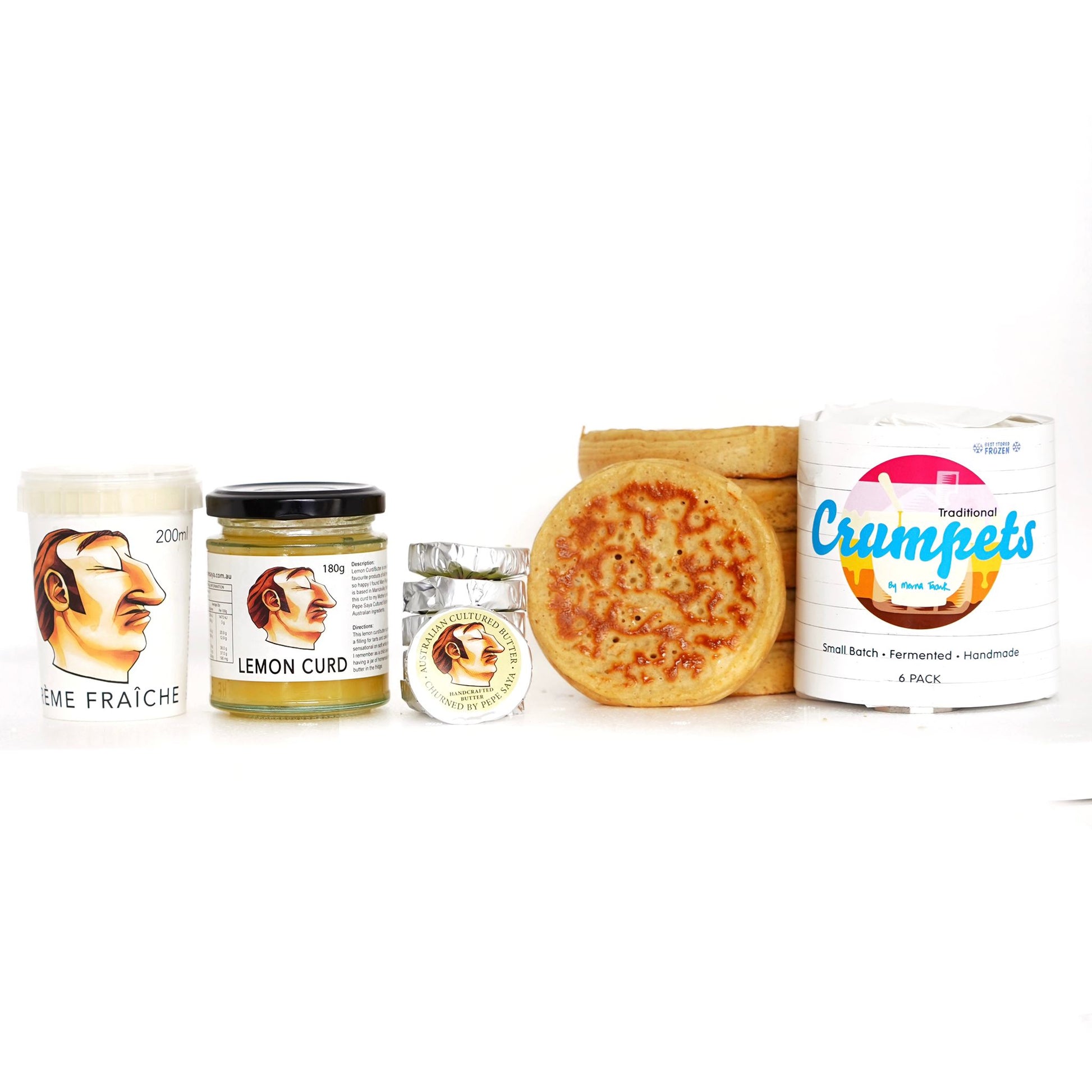 Start your morning with Crumpets by Merna and Pepe Saya, bringing all your breakfast favourites home. Enjoy our Traditional Sourdough Crumpets topped with Pepe Saya Butter, Crème Fraîche, and Lemon Curd.