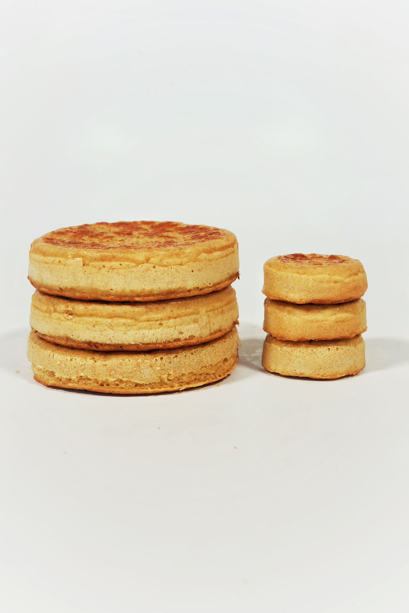 Merna’s Canapé Crumpets are perfect for parties or gatherings. These versatile, bite-sized traditional buttermilk crumpets are made with Pepe Saya buttermilk and can be enjoyed with both sweet or savoury toppings.